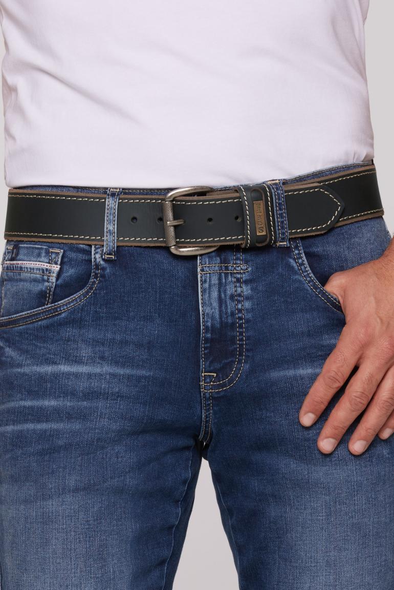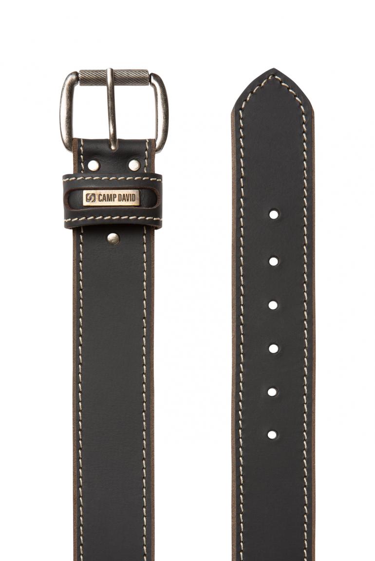 Široký kožený opasek od CAMP DAVID je skutečným týmovým hráčem, pokud jde o denim. Je vyroben z hladké buvolí kůže a pyšní se kontrastním prošíváním. Jeho kovová přezka je vhodná pro alergiky a široké kožené poutko na opasek s plaketou s logem charakterizuje tento doplněk. Ideální pro dodání ležérního stylu vašemu volnočasovému vzhledu. Poznámka: Uvedené délky se měří od začátku spony ke 3. dírce. Šířka cca. 4,5 cm. Materiál: 100% kůže
