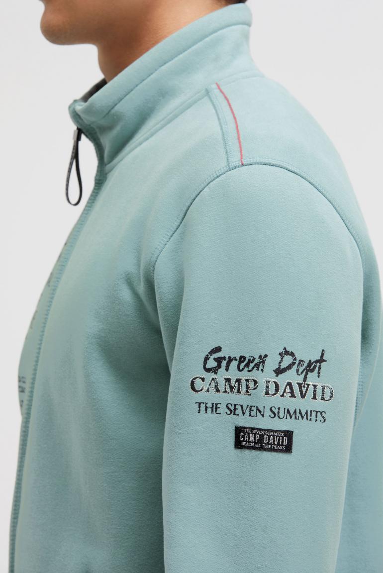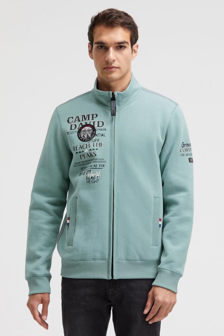 Elegantní a ležérní vzhled je s touto teplou mikinou od CAMP DAVID skvělým doplňkem. Zdobí ji stylové potisky s výšivkami a nášivkami. Boční kapsy mají žebrovaný lem, pásku a zapínání na druk. Materiál: 50% bavlna, 50% polyester
