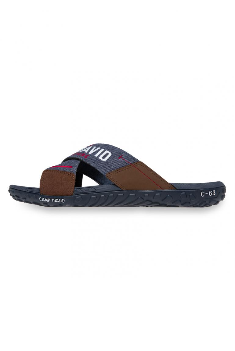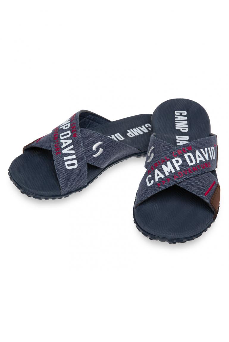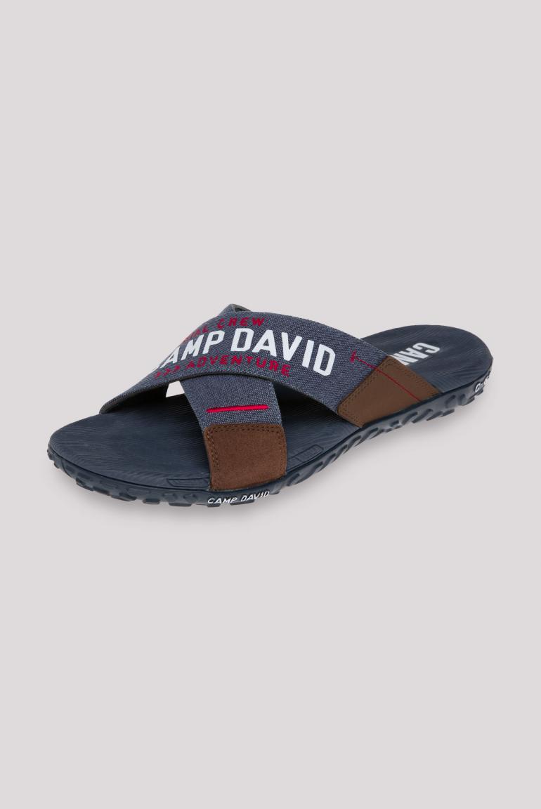 Ležérní plážové pantofle od CAMP DAVID jsou nezaměnitelné se svými širokými, robustními plátěnými popruhy a cool kresbou loga. Struktura plátna má sepraný vzhled a je částečně zvýrazněna semišem a výšivkou. 3D texturovaná měkká pěnová podešev zajišťuje dobré pohodlí při nošení, zatímco podrážka z pryžového profilu poskytuje dobrou odolnost proti uklouznutí. Materiál: Směs textilu, kůže a syntetiky, Podšívka: Textil, Podešev: EVA pryžová podrážka