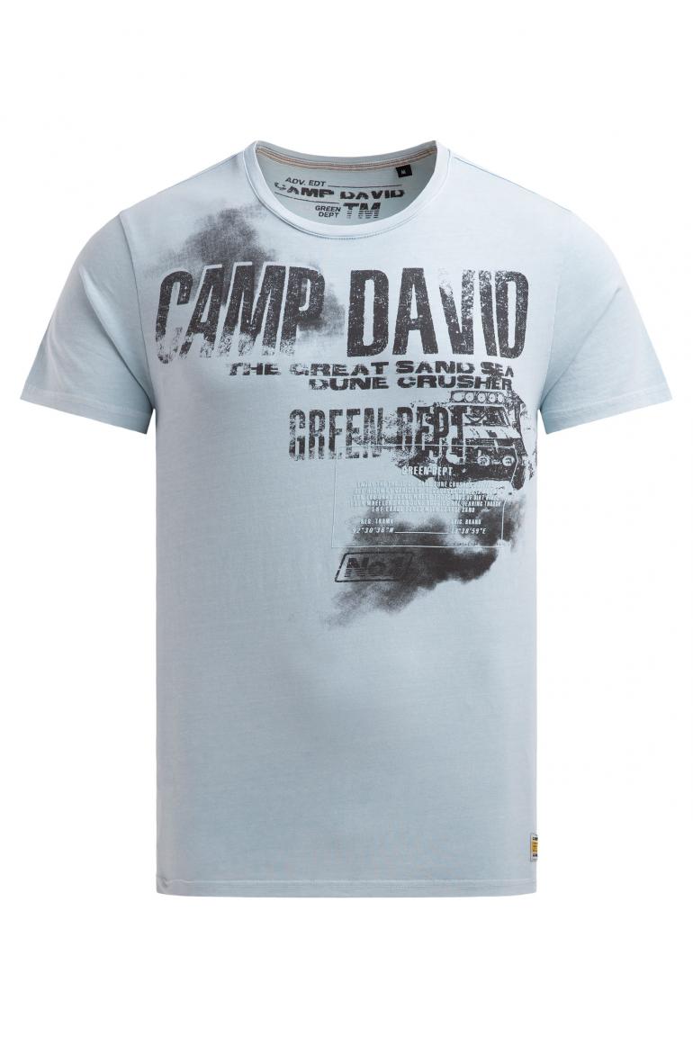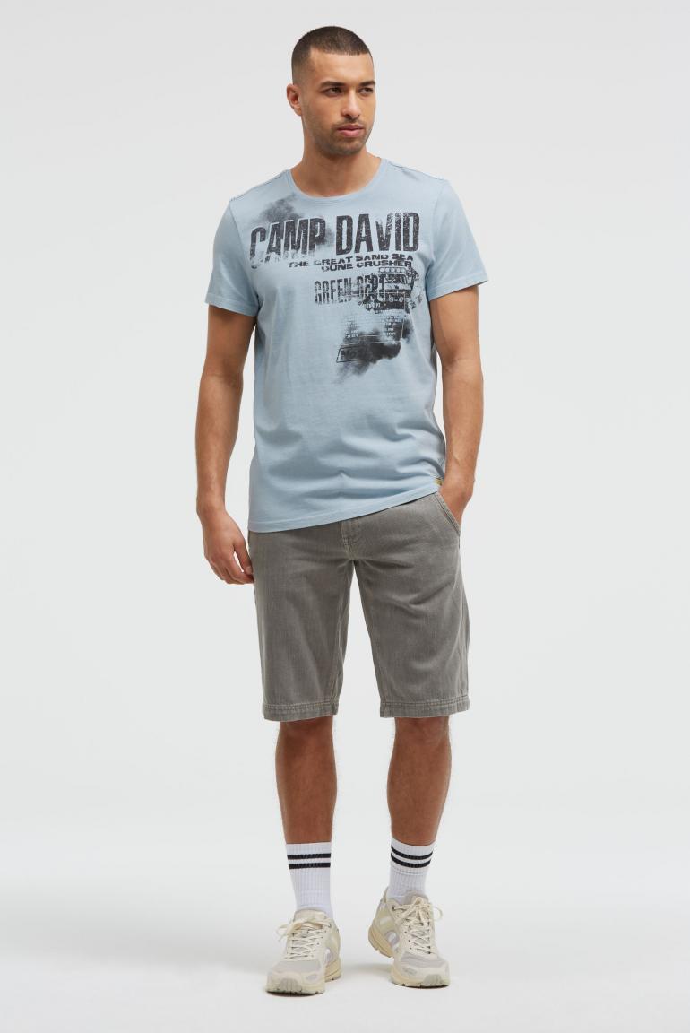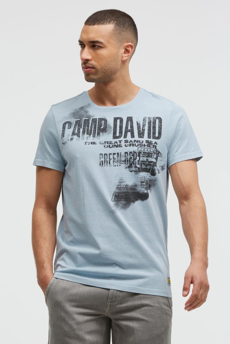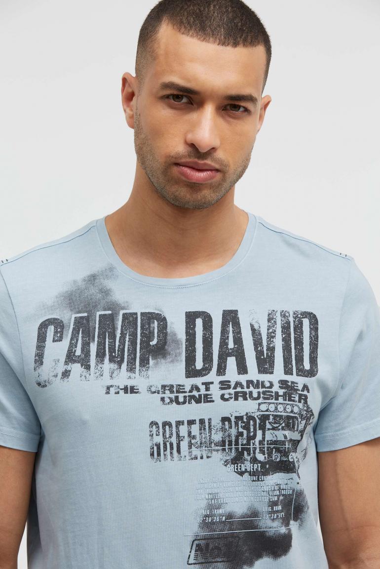 Toto tričko s kulatým výstřihem od značky CAMP DAVID zaručuje výrazný styl. Má ležérní, opotřebované praní a výraznou grafiku inspirovanou vintage stylem. Přední stranu zdobí potisk s fotografií a gumou, zatímco na horní části zad je potisk s logem. Ramena zvýrazňuje tónovaná páska. Materiál: 100% bavlna