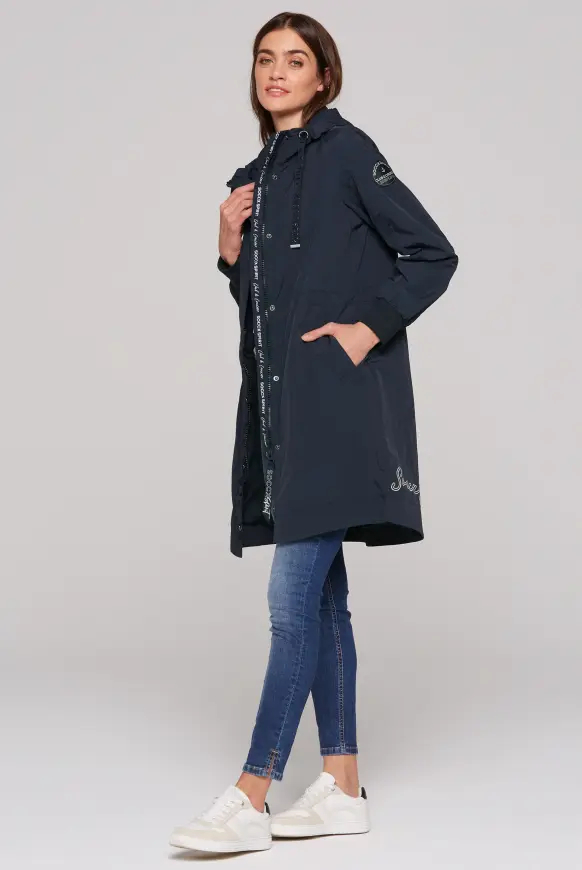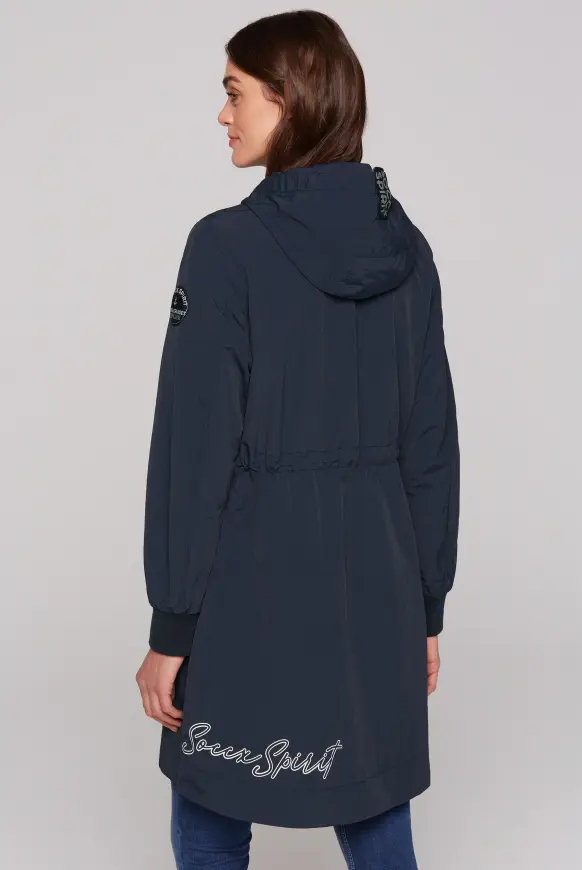 Lehká větrná parka s kapucí od SOCCX je ideální na cesty. Velikost pasu lze upravit pomocí nastavitelné gumičky, rukávy mají pohodlné žebrované manžety. Boční kapsy se zapínají na druky a malé detaily loga zdobí kapuci, jeden rukáv, přední zip a zadní lem. Materiál: 100% polyamid, podšívka: 100% polyester