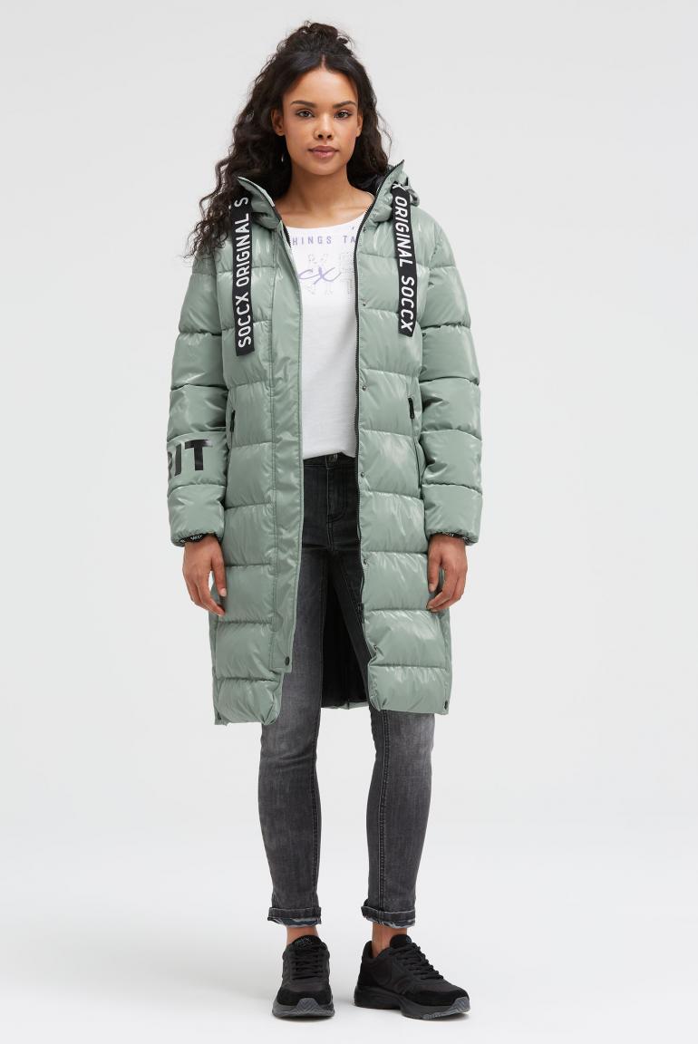 Tato prošívaná parka SOCCX je absolutním poutníkem svým stylovým lesklým vzhledem a výraznými potisky log. Má kapuci s potiskem loga a široké stahovací šňůrky se značkou. Zip je skrytý pod drukem a kapsy na ruce se zapínají na zipy. Boční druky zajišťují volnost pohybu. Stylový design dotváří potisk XL štítku na zadní straně. A parka vás také příjemně zahřeje! Materiál svrchní tkanina: 100% polyester, zátěr: 100% polyuretan, podšívka: 100% polyamid, výplň: 100% polyester