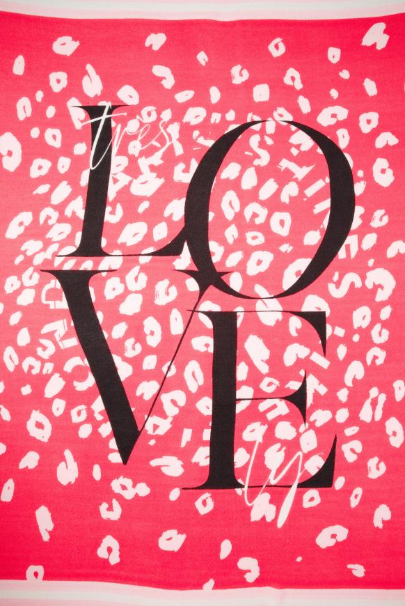 Půvabný! Hranatý šátek uprostřed s velkým potiskem LOVE je skvělým doplňkem. Látka má měkkou rukojeť a třásně na všech stranách. Doplněk pro dobrý pocit! Rozměry: cca 125 x 125 cm. Délka třásně cca 1 cm. Údržba : 30 ° speciální jemný cyklus,nebělit,není vhodný pro sušičku, žehlit na střední teplotu (max.110 °), žádné chemické čištění. Materiál: 100% polyakryl.